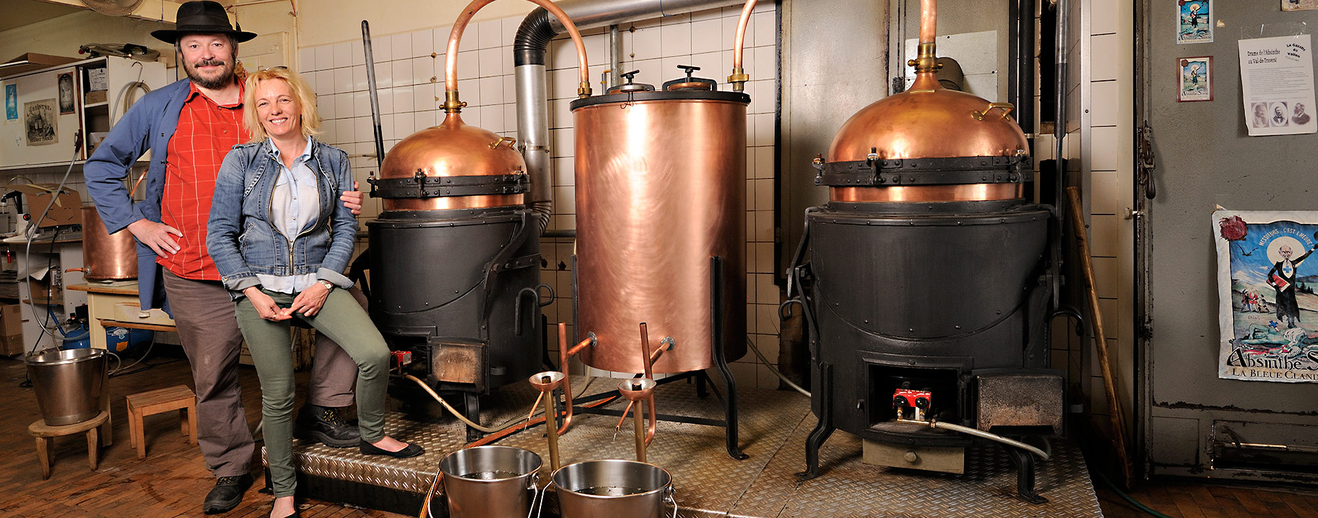 A la tête d’Artemisia distillerie artisanale, Claude-Alain et Karine Bugnon ne suivent qu’une stratégie : leur passion pour l’absinthe. La véritable, évidemment, produite avec les plantes du Val-de-Travers cultivées avec soins par nos agriculteurs. Claude-Alain et Karine Bugnon ont imposé une philosophie rigoureuse à leur distillerie : le respect de l’absinthe traditionnelle et le maintien d’une production artisanale de qualité.